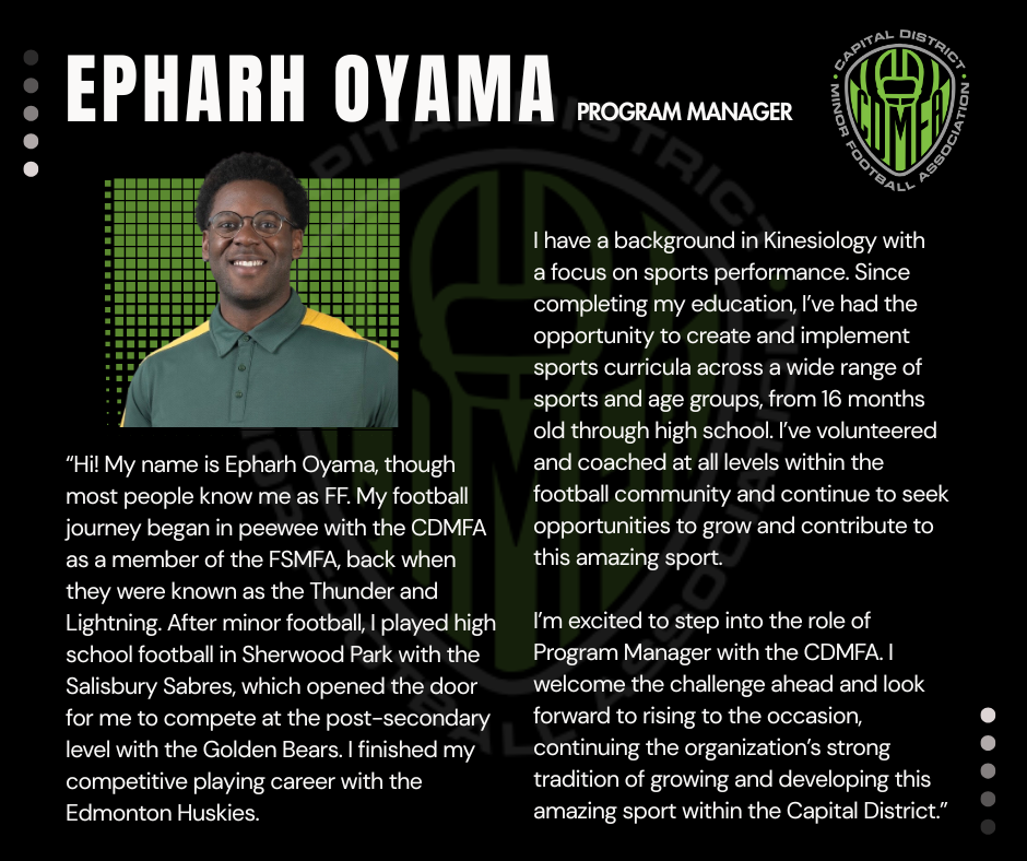 Epharh brings extensive football program experience and a fantastic, energetic attitude.